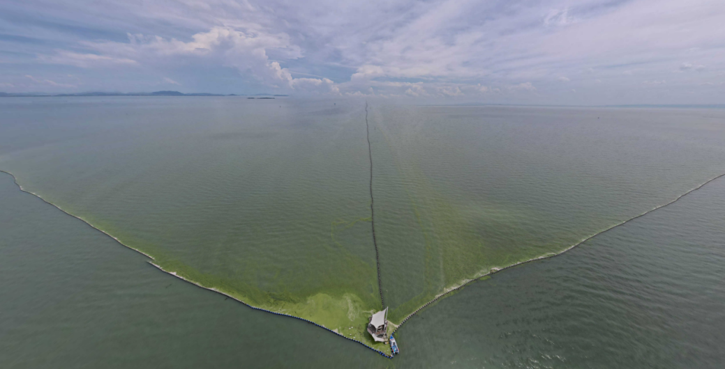 深潛式加壓控藻井+升降式藍藻防控浮壩