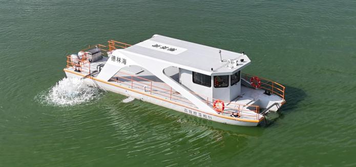 采用高效可調式渦井取藻、藍藻囊團破壁、一體化二級強化氣浮等核心技術,岸上站點藻水分離系統集成了藍藻打撈、脫氣沉降、氣浮分離、脫水等多個環節的技術和設備,形成了可規模化和工廠化處理藍藻的基站。適用于藍藻水華長期規律性、大范圍聚集區域的常態化應急處置。2024年,公司研發出轉鼓藻水分離裝置,進一步降低了運行成本,減少了占地面積,提升了除藻效率,迅速躋身成為湖泊生態醫院“醫水”手段的重要成員。